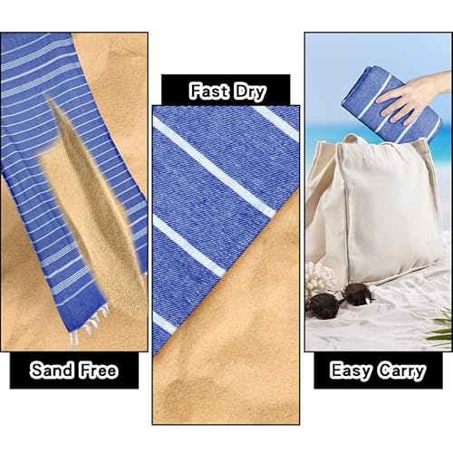 Eucomir Fouta Telo Mare Grande 90 * 180CM,Asciugamano da Spiaggia,Teli Mare Spiaggia Antisabbia Leggero frange,Super Assorbente e Asciugatura Rapida,Telo da Bagno Lo Piscina/Viaggi/Campeggio,Blu Navy