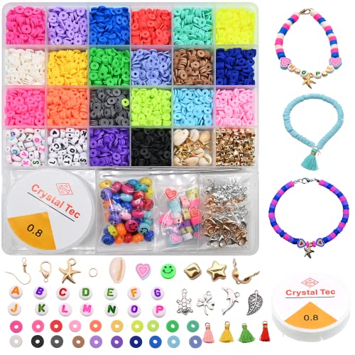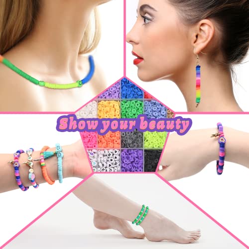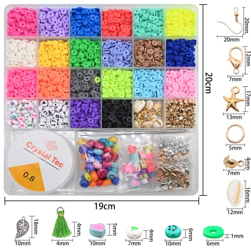 Contenuto del pacchetto: questo set di perle di argilla per il kit per la produzione di gioielli include circa 4600 perle di argilla a 20 colori, 210 di ogni colore,Nappa*5, Ciondolo*5, 52 perle alfabetiche (4 (nero+colorato) ciascuna da a-z), 12 perle a cuore, 45 faccina perle, 50 perle a stelle a cinque punte, 50 perle quadrate, 50 chiusura, 20 fermagli di aragosta, 8 pendenti a stella Scatola di archiviazione a 24 scatole.