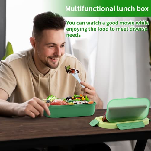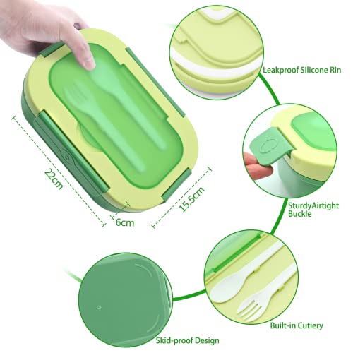 Eucomir Porta Pranzo,Lunch Box con 4 Scomparti,Bento Box Senza BPA,Adatto a Microonde e Lavastoviglie,Portapranzo con Posate Integrate Cucchiaio e Forchetta,Facile da Trasportare,Verde