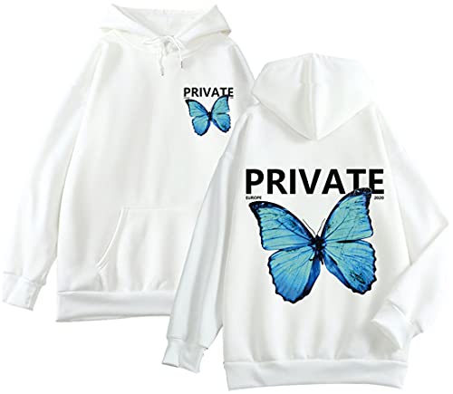 EUDOLAH Felpa Moda Casual da Donna Ragazza con Cappuccio e Stampa a Farfalla Tuta Autunnale Invernale Unisex S, Bianco