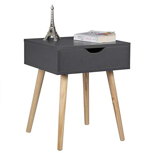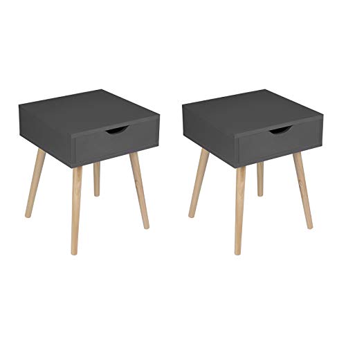 EUGAD 2x Comodino con Cassetto Tavolino Piccolo da Salotto Moderno Gambe in Legno Organizzatore da Letto Grigio scuro 0080ZZ-2