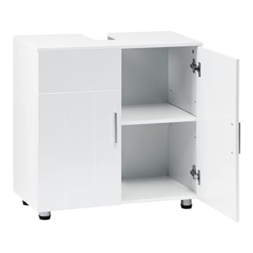 EUGAD Mobile Sottolavabo per Bagno in MDF, Armadietto Salvaspazio con Ripiano Regolabile Mobiletto, Mobile Copricolonna con Maniglie e Gambe in Metallo, Bianco, Argento, 60x30x60cm