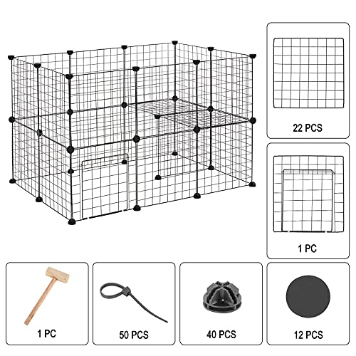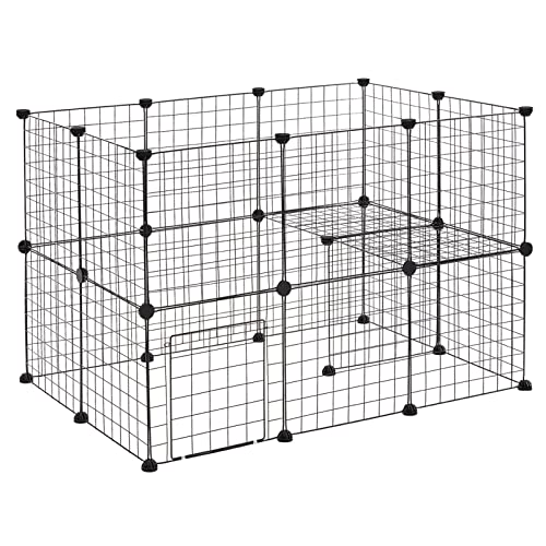 EUGAD Recinto per Conigli Criceti Cucciolo Porcellino d'India Cavie Gatto Gabbie per piccoli animali con porta Metallico DIY 23 Pannelli (35x35cm/Pannello) Nero 107 x 75 x 71 cm 0003WL