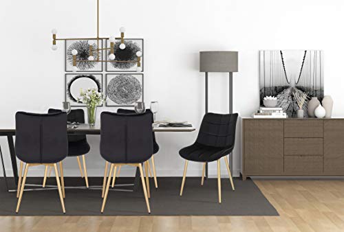 EUGAD Set di 6 Sedia Poltroncina Nera in Velluto da Cucina Sala Pranzo Poltroncine Soggiorno in Metallo Dorato 0670BY-6