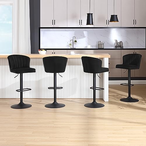 EUGAD 4 Sgabelli da Bar con Schienale, Sedie in Velluto con Poggiapiedi, Sgabelli Regolabili in Altezza e Girevoli, Forma a Conchiglia, in Velluto e Metallo, Nero, 1055BY-4