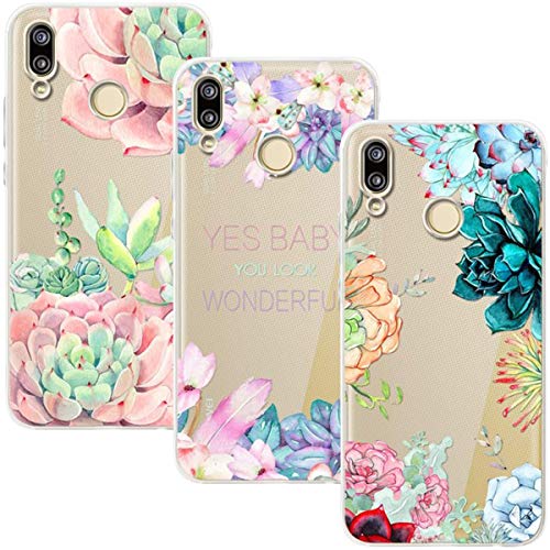 EUGO [3 Pack] Cover Huawei P20 Lite, Morbido TPU Cover limpido Slim Anti Scivolo Protezione Case per Huawei P20 Lite, Color-2