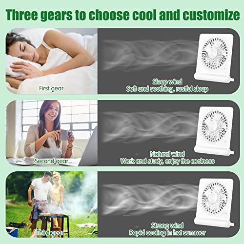 EUJAM Piccolo Ventilatore da Tavolo USB, Mini Ventola da scrivania Portatile USB Ricaricabile 2000mAh Batteria, 260° Pieghevole Forte Vento Ultra Silenzioso 3 Velocità Ufficio/Auto/Viaggio/Campeggio