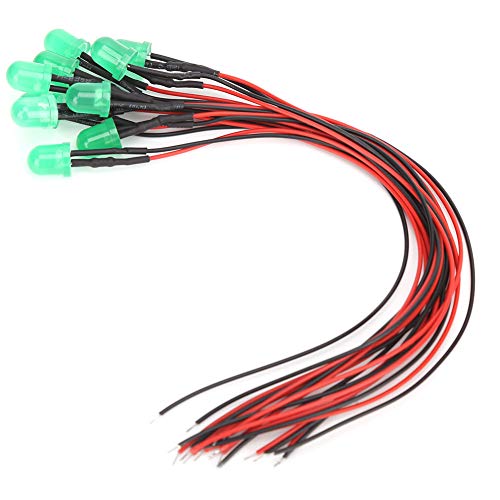 Eujgoov 50PCS 12V 8mm perline luminose cromatiche a LED con cavo 20CM 26AWG per conducibilità elettrica per professionisti o appassionati di elettronica(verde)