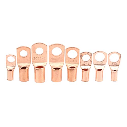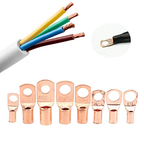 Eujgoov 60Pcs Terminali con capocorda ad anello in rame Terminali per cavi della batteria Occhielli in rame Connettori terminali Cavo elettrico Connettore a crimpare SC6-SC25 Set