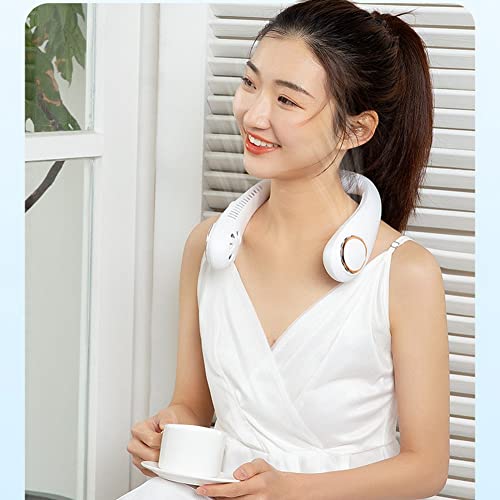 Piccolo e portatile, non indossa: il ventilatore portatile da collo è e più piccolo, riducendo la pressione sul collo. Il ventilatore da collo è realizzato in silicone elastico di alta qualità, che è amichevole, si adatta ed è comodo da indossare. La larghezza del ventilatore da collo può essere regolata liberamente, adatto per utenti con varie circonferenze del collo
