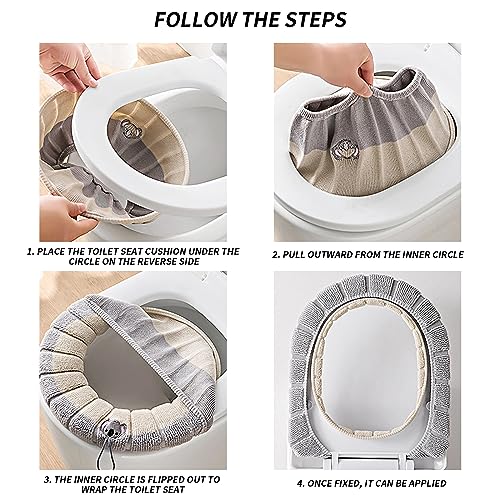 Facile da usare: posizionare la copertura con anello sul fondo del sedile del water, tirare la copertura attraverso il foro, quindi tirare la copertura sul sedile del water. Rimuovendo l'anello di plastica integrato, si può lavare direttamente a mano o in lavatrice.
