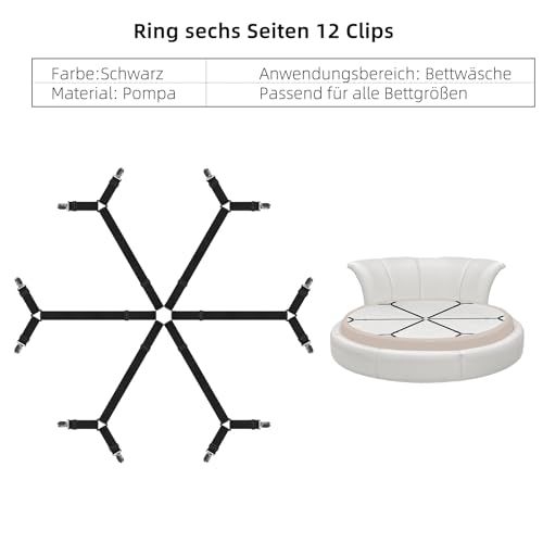 EULAPGOE Tendilenzuolo Regolabile, Clip Porta Lenzuolo, Tendilenzuolo, Clip a 3 vie e 6 lati, Tendilenzuolo con 12 Clip in Metallo, per Lenzuolo, Materasso o Divano (Nero)