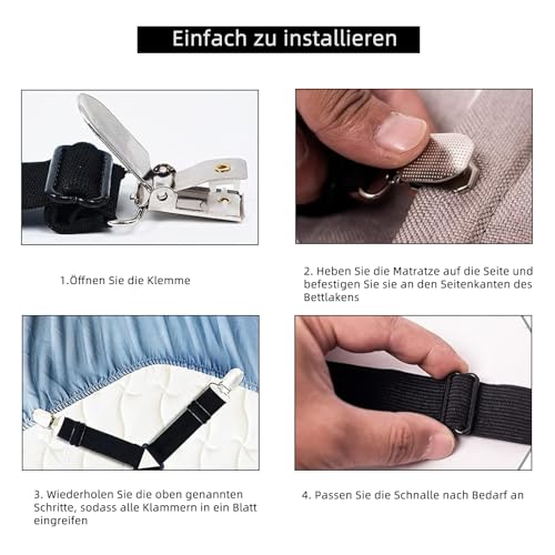 Materiale di alta qualità: le clip per lenzuola sono realizzate con un elastico e robuste clip in metallo. Tengono le lenzuola saldamente in posizione e impediscono efficacemente che cadano. Anche se lo si utilizza per molto tempo, non sarà un problema.