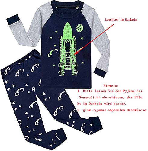 EULLA Pigiama a maniche lunghe per bambini, in cotone, trattore, razzo T-Rex per auto, set pigiama, biancheria da notte da 1 a 7 anni, 92 98 104 110 116 122, 5# razzo blu scuro, 116 cm