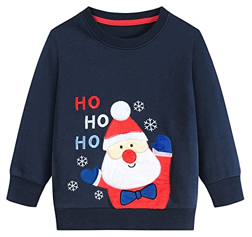 EULLA Ragazzi maglione natalizio renna felpa regalo per bambini manica lunga dinosauro maglietta top girocollo pullover felpe abbigliamento casual vestiti età 1-7 anni, 4 # Babbo Natale Blu Navy, 5-6 Anni