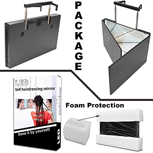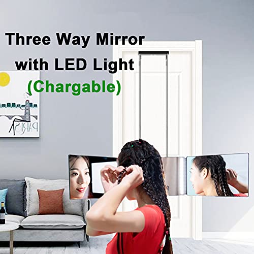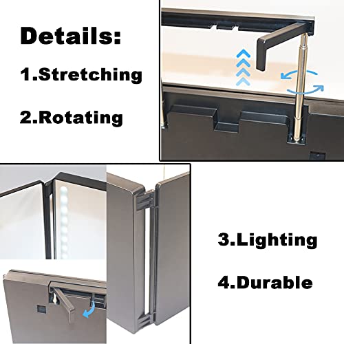 EUNEWR specchio a 360 gradi per capelli con luce led,specchio trucco 3 vie Specchio Trittico,specchio a tre vie con Ganci regolabili in altezza,self cut mirror 360,per Trucco/styling/taglio/bellezza