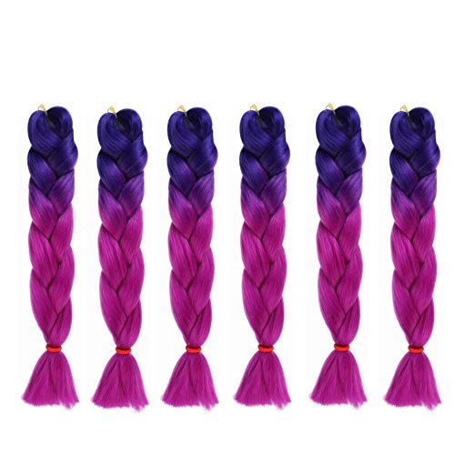 Eunice Hair Jumbo, extension per capelli sintetici, per fai da te, trecce ombré viola, 2 toni, 100 g, 61 cm (viola ombra)