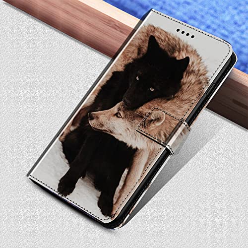 EuoDuo Compatibile con OPPO Reno 8 Lite 5G Cover con Disegni Custodia Libro Portafoglio in PU Pelle Completa Protettiva Caso Magnetica Flip Wallet Case - Lupo nero marrone