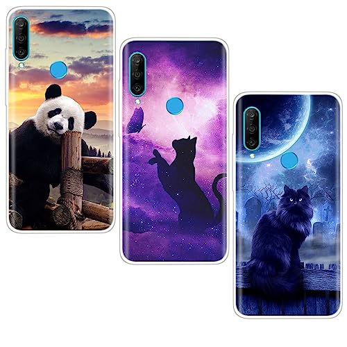 EuoDuo 3X Cover Compatibile con Huawei P30 Lite Custodie Morbido Trasparente Disegno Silicone Case Ultra Sottile TPU Protezione Antiurto Custodia - Panda Farfalla Gatto