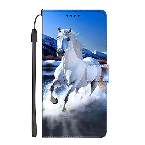 EuoDuo Cover Libro per Samsung Galaxy A14 5G/4G Custodia con Disegni Portafoglio PU Pelle Completa Protettiva Caso Magnetica Flip Wallet Case - Cavallo Bianco Blu