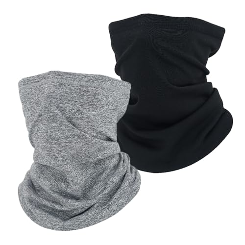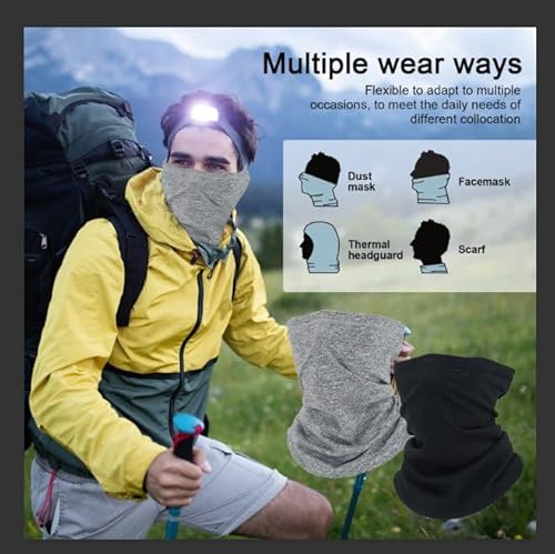 EUPSIIU 2 Pezzi Uomini Donne Scaldacollo Termico Invernale, Multifunzione Scaldacollo Bandana Traspirante Elastico per Sciare, Ciclismo Sport All'Aria Aperta Taglia unica(Grigio, Nero)