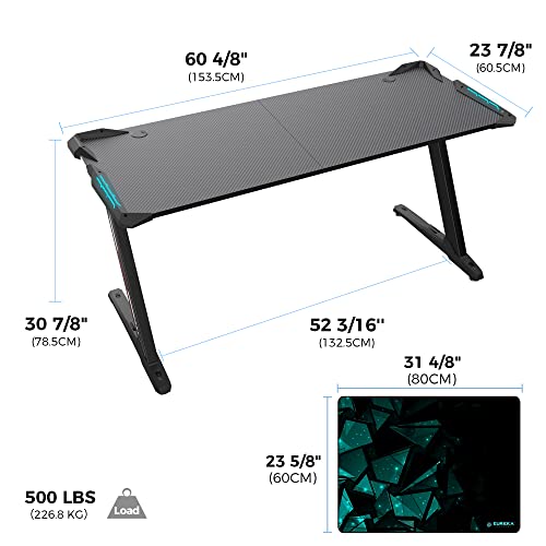 EUREKA ERGONOMIC Scirvania Gaming LED 156 x 64 CM Scrivania Computer Scrivania PC con Tappetino per Mouse, Gancio per Cuffie, Portabicchieri e Porta Controller