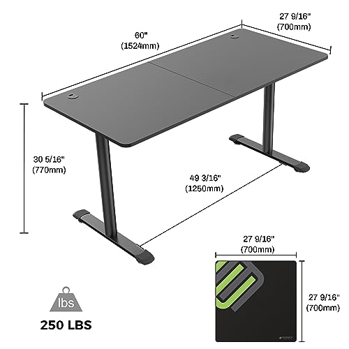 EUREKA ERGONOMIC Scrivania ergonomica per studio, semplice scrivania per computer, con gestione dei cavi, per casa e ufficio (152.4 x 70 x 77 cm, Black)