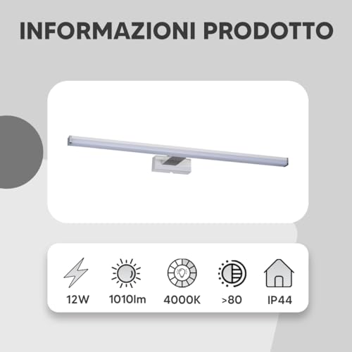 Eurekaled - Applique da parete LED rettangolae cromato 12W 60cm 4000K IP44