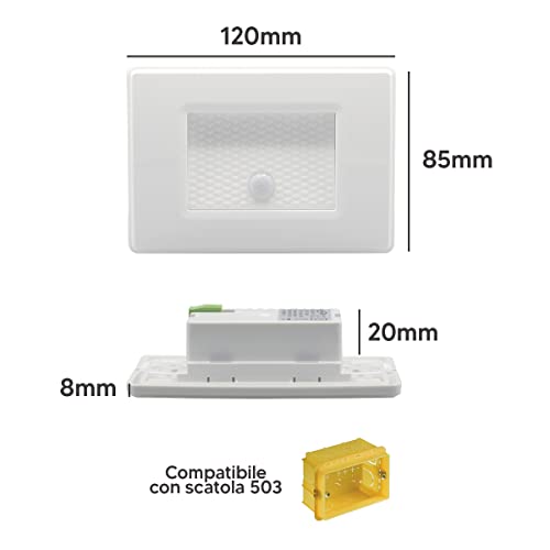 Eurekaled Segnapasso LED con sensore 1,3W 25 lumen 50mA compatibile con scatola 503 (Luce naturale 4000K)