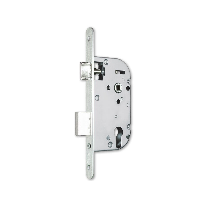 Dettagli: Serratura ad asta da 40 mm. Disponibile con o senza frontale reversibile. Bocca di lupo, chiave a I, chiave a L.