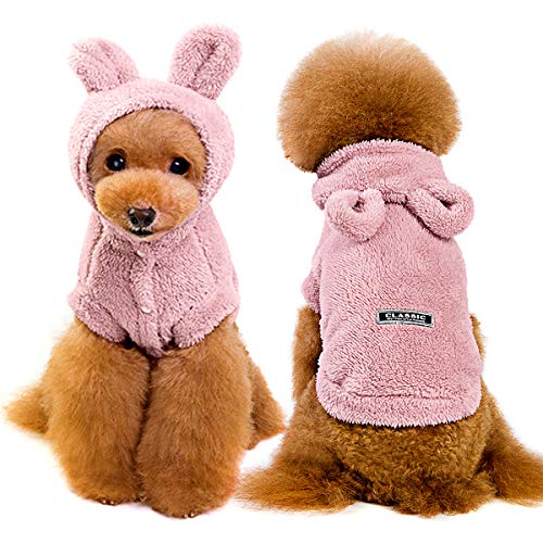 Eurobuy - Maglione caldo invernale per cani, spesso e morbido, in morbida flanella, con cappuccio con orecchie da orso, in tinta unita
