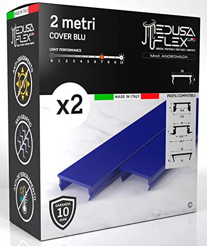 Eurocali Cover Profilo alluminio per Strisce LED MEDUSAFLEX mod. Andromeda 2 Metri - Blu - Made in Italy in Policarbonato stabilizzato UV certificata UL94HB - Garanzia 10 anni - Pacco da 2 (4m)