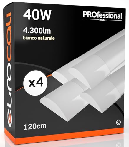 Eurocali 4x Plafoniere LED 40W 120cm Professionale Alta Efficienza Garanzia 5 Anni 4800 lumen - Forma: Tubo Prismatico Slim - Luce Bianco Naturale 4000K - Fascio Luminoso 120°