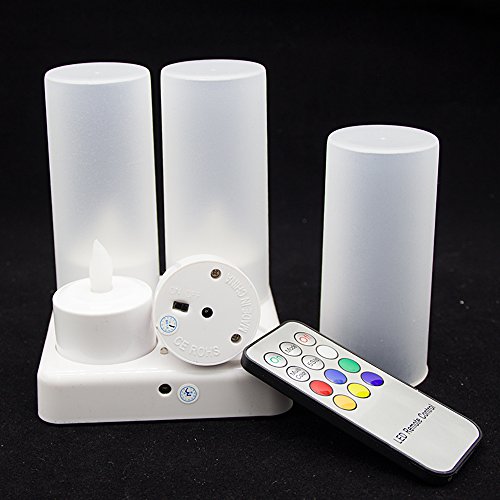 EuroFone Ricaricabile A LED Candela Tea Lights Tealights Senza Fiamma Candele Multicolore Con Titolari Telecomando Stazione Di Ricarica (Euro Plug) (04R7)