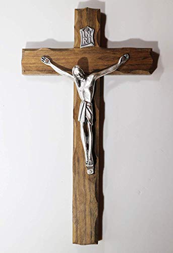 Eurofusioni Croce da Parete in Legno di Noce e Cristo Placcato Argento - Crocefisso h 18 cm