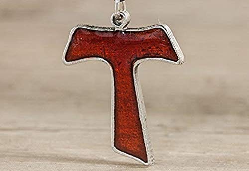 Eurofusioni Croce Tau Rosso placcato argento. Ciondolo ideale per collane, bracciali e Bomboniere fai da te Matrimonio e Laurea - Ciondolo Charm h 3 cm - 10 pezzi