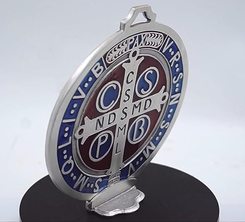 Eurofusioni Medaglione San Benedetto Placcato Argento Dipinto a Mano - Diametro cm 12,5