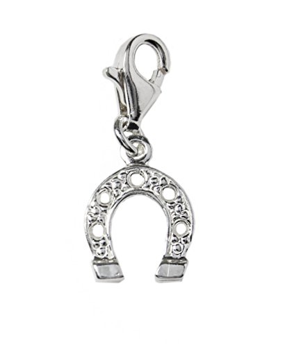 Eurojewellery - Ciondolo a forma di ferro di cavallo, in vero argento Sterling 925, con moschettone