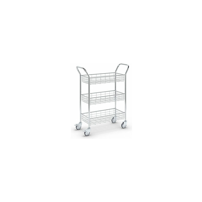 Carrello per l'ufficio e di smistamento posta, portata 200 kg, alluminio brillante, lungh. x largh. x alt. 1005 x 380 x 1245 mm, 3 ripiani. Fornitura = montato. Portata = 200 kg. Lunghezza superficie di carico = 725 mm. Larghezza superficie di carico = 330 mm. Lunghezza = 1005 mm. Larghezza = 380 mm. Altezza = 1245 mm. Altezza ripiani = 290 / 660 / 1030 mm. Portata per piano = 100 kg. Materiale telaio = tubo d'acciaio, verniciato a polvere. Colore telaio = alluminio brillante RAL 9006. Dotazione ruote = 4 rotelle pivottanti, di cui 2 con fermo doppio. Materiale ruote = gomma piena, con profilo liscio. Diametro ruote = 100 mm. Cuscinetti ruota = cuscinetto a rulli. Numero maniglioni = 2 pz. Numero piani = 3 pz. Altezza cesto = 130 mm. Distanza utile ripiani = 240 mm. Tipo di prodotto = carrelli di smistamento posta. Portata 200 kg. Ideali per uffici, amministrazioni e smistamento della posta. Le ruote antitraccia non rovinano il pavimento e non lasciano segni. Molto maneggevoli grazie