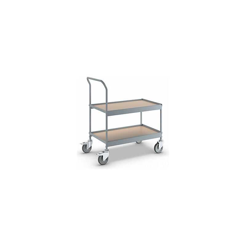 Carrello di servizio, lungh. x largh. x alt. 840 x 470 x 955 mm, con 4 rotelle pivottanti, 2 con fermo doppio, Ø ruota 125 mm. Fornitura = smontato. Altezza = 955 mm. Lunghezza superficie di carico = 785 mm. Larghezza superficie di carico = 422 mm. Lunghezza = 840 mm. Altezza ripiani = 240 / 590 mm. Portata = 150 kg. Numero piani = 2 pz. Larghezza = 470 mm. Materiale telaio = tubo d'acciaio, verniciato a polvere. Colore telaio = grigio argento RAL 7001. Materiale = truciolato con verniciatura plastica. Colore superficie di carico = faggio. Numero maniglioni = 1 pz. Dotazione ruote = con 4 rotelle pivottanti, 2 con fermo doppio. Versione ruote = gomma piena. Diametro ruote = 125 mm. Peso = 17.4 kg. Ideali per il catering. L'impugnatura e le rotelle pivottanti consentono uno spostamento flessibile verso il luogo di utilizzo. Le ruote antitraccia non rovinano il pavimento e non lasciano segni. Impiego versatile. Pratici e funzionali. Verniciatura a polvere in grigio argento RAL 7001.