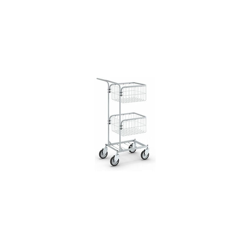 Carrello per ufficio KOMPAKT, telaio color grigio argento, 4 rotelle pivottanti, Ø 125 mm. Fornitura = smontato. Lunghezza superficie di carico = 400 mm. Larghezza superficie di carico = 300 mm. Lunghezza = 630 mm. Larghezza = 360 mm. Altezza = 1090 mm. Numero ripiani = 2 pz. Portata per piano = 15 kg. Materiale telaio = tubo d'acciaio, verniciato a polvere. Colore telaio = grigio argento RAL 7001. Dotazione ruote = con 4 rotelle pivottanti. Diametro ruote = 125 mm. Numero maniglioni = 1 pz. Numero piani = 2 pz. Tipo di prodotto = carrelli di smistamento documenti. Ideali per lo smistamento della posta. Ideali per mantenere l'ordine. Ideali per le operazioni di suddivisione. Dimensioni cestini: lunghezza x larghezza x altezza 400 x 300 x 210 mm. Portata cesto 15 kg. Ruote con battistrada in gomma piena antitraccia. Viene consegnato smontato. Montaggio semplice.