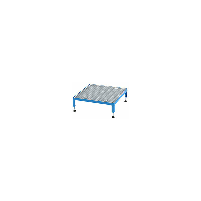 Piattaforma di lavoro, altezza regolabile 165 - 230 mm, con lastra in griglia, piattaforma lungh. x largh. 610 x 610 mm, blu chiaro. Fornitura = in parte smontato. Altezza piattaforma = 165 - 230 mm. Materiale telaio = acciaio. Lunghezza piattaforma = 610 mm. Larghezza piattaforma = 610 mm. Peso = 15.4 kg. Colore telaio = blu chiaro RAL 5012. Superficie = verniciatura a polvere. Versione = con griglia. Portata = 150 kg. Tipo di prodotto = piattaforme di lavoro. Robusto telaio di lunga durata in profilati angolari. Facile regolazione dell'altezza grazie ai piedini a vite. A scelta con verniciatura a polvere in blu chiaro RAL 5012 o zincatura a fuoco. Ruotando i piedini a vite è possibile regolare leggermente l'altezza della piattaforma. Fissaggio della posizione in alto tramite dadi. Inserti in griglia zincata a fuoco. Viene consegnato smontato. Montaggio semplice.