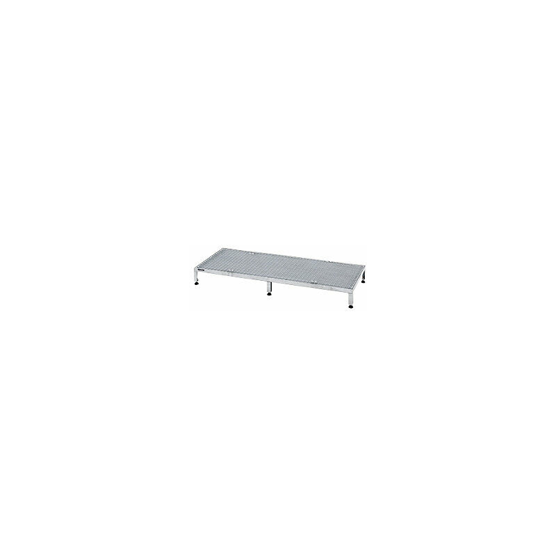 Piattaforma di lavoro, altezza regolabile 165 - 230 mm, con lastra in griglia, piattaforma lungh. x largh. 1510 x 610 mm, zincata a fuoco. Fornitura = in parte smontato. Altezza piattaforma = 165 - 230 mm. Materiale telaio = acciaio. Lunghezza piattaforma = 1510 mm. Larghezza piattaforma = 610 mm. Peso = 34.3 kg. Colore telaio = zincatura a fuoco. Superficie = zincatura a fuoco. Versione = con griglia. Portata = 150 kg. Tipo di prodotto = piattaforme di lavoro. Robusto telaio di lunga durata in profilati angolari. Facile regolazione dell'altezza grazie ai piedini a vite. A scelta con verniciatura a polvere in blu chiaro RAL 5012 o zincatura a fuoco. Ruotando i piedini a vite è possibile regolare leggermente l'altezza della piattaforma. Fissaggio della posizione in alto tramite dadi. Inserti in griglia zincata a fuoco. Viene consegnato smontato. Montaggio semplice.