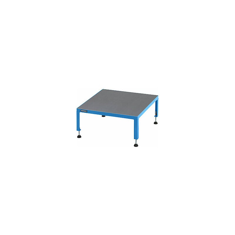 Piattaforma di lavoro, altezza regolabile 255 - 320 mm, con piattaforma serigrafata, piattaforma lungh. x largh. 610 x 610 mm, blu chiaro. Fornitura = in parte smontato. Altezza piattaforma = 255 - 320 mm. Materiale telaio = acciaio. Lunghezza piattaforma = 610 mm. Larghezza piattaforma = 610 mm. Peso = 12.5 kg. Colore telaio = blu chiaro RAL 5012. Superficie = verniciatura a polvere. Versione = con pannello fenolico zigrinato. Portata = 150 kg. Tipo di prodotto = piattaforme di lavoro. Robusto telaio di lunga durata in profilati angolari. Facile regolazione dell'altezza grazie ai piedini a vite. A scelta con verniciatura a polvere in blu chiaro RAL 5012 o zincatura a fuoco. Ruotando i piedini a vite è possibile regolare leggermente l'altezza della piattaforma. Fissaggio della posizione in alto tramite dadi. Inserti in robusta lamiera zigrinata. Viene consegnato smontato. Montaggio semplice.