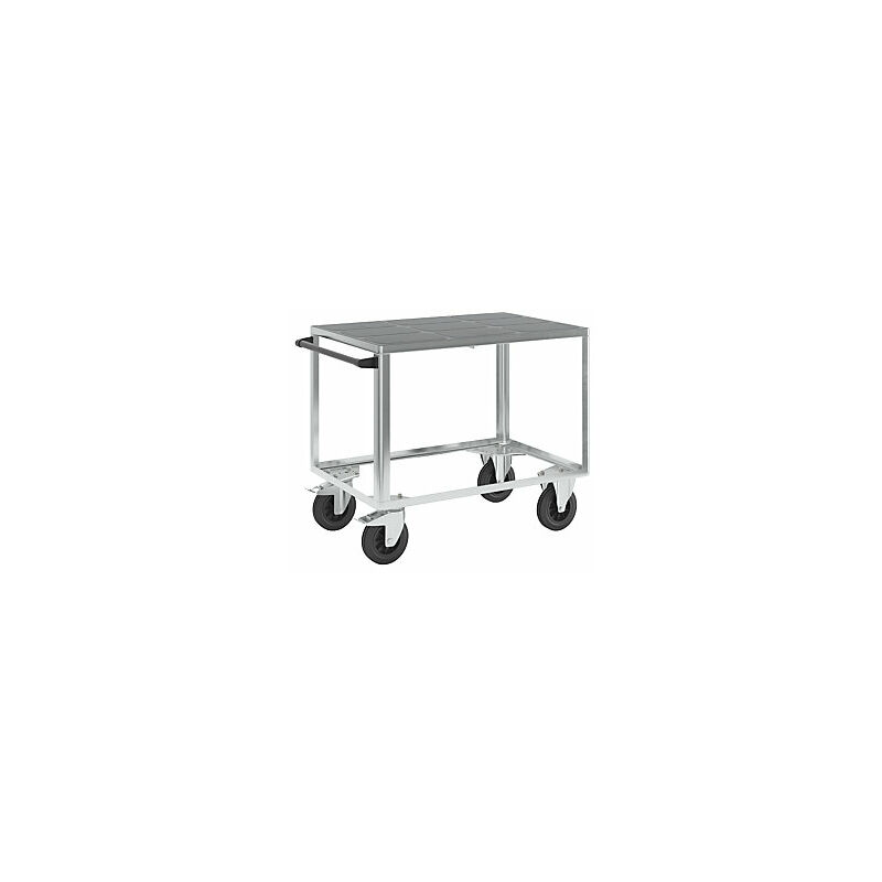 Carrello di montaggio, 1 ripiano in plastica, pianale 1050 x 700 mm, telaio zincato. Fornitura = montato. Numero piani = 2 pz. Lunghezza superficie di carico = 1050 mm. Larghezza superficie di carico = 700 mm. Colore = zincatura elettrolitica. Materiale superficie di carico = plastica. Altezza di lavoro = 895 mm. Portata = 500 kg. Altezza ripiani = 275 / 895 mm. Lunghezza = 1128 mm. Larghezza = 700 mm. Altezza = 895 mm. Tipo di prodotto = carrelli di montaggio. Dotazione ruote = 2 rotelle pivottanti con fermo doppio, 2 rotelle a supporto fisso. Versione ruote = gomma piena. Diametro ruote = 200 mm. Cuscinetti ruota = cuscinetto a rulli. Numero ripiani = 1 pz. Portata 500 kg. Ogni cosa resta al suo posto grazie ai ripiani in plastica antiscivolo. Altezza di lavoro ergonomica per lavorare oggetti ingombranti e pesanti. Gli angoli e gli spigoli arrotondati permettono di lavorare in sicurezza, senza lesioni e danni. Superfici di carico facili da sostituire fissate in modo stabile grazie