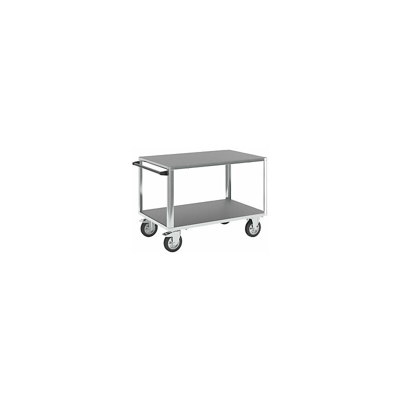 Carrello di montaggio, 2 superfici con pannelli in lamiera zigrinata, pianale 1250 x 800 mm, telaio zincato. Fornitura = montato. Numero piani = 2 pz. Lunghezza superficie di carico = 1250 mm. Larghezza superficie di carico = 800 mm. Colore = zincatura elettrolitica. Materiale superficie di carico = pannello fenolico zigrinato con superficie antisdrucciolo. Altezza di lavoro = 915 mm. Portata = 1000 kg. Altezza ripiani = 285 / 915 mm. Lunghezza = 1328 mm. Larghezza = 800 mm. Altezza = 915 mm. Tipo di prodotto = carrelli di montaggio con 2 ripiani. Dotazione ruote = 2 rotelle pivottanti con fermo doppio, 2 rotelle a supporto fisso. Versione ruote = gomma piena elastica. Diametro ruote = 200 mm. Cuscinetti ruota = cuscinetto a sfera. Numero ripiani = 2 pz. Portata elevata di 1000 kg per trasportare merci pesanti. Ogni cosa resta al suo posto grazie al pannello serigrafato antiscivolo. Altezza di lavoro ergonomica per lavorare oggetti ingombranti e pesanti. Gli angoli e gli spigoli