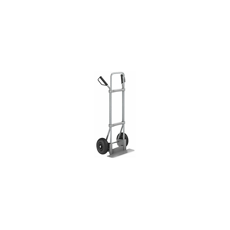 Carrello per sacchi, zincato, piano di appoggio largh. x prof. 450 x 160 mm, alluminio, ruote con camera d'aria. Fornitura = in parte smontato. Tipo di prodotto = carrelli modulari per sacchi. Versione = senza slitte, con piano di appoggio. Portata = 200 kg. Larghezza pala = 450 mm. Profondità pala = 160 mm. Materiale = acciaio, con zincatura galvanica. Materiale della pala = alluminio. Altezza = 1310 mm. Larghezza = 500 mm. Versione ruote = ruote con camera d'aria. Diametro ruote = 260 mm. Cuscinetti ruota = cuscinetto a rulli. Colore = zincatura, alluminio. Peso = 9.4 kg. Carrello per sacchi di alta qualità in tubo d'acciaio e colata di alluminio. Salvaspazio grazie alla pala ribaltabile. Versatili grazie a numerosi accessori modulari. Ricambi garantiti per tutti i componenti. Ideale per il trasporto facile e sicuro di casse, cassette, scatole di cartone, nonché pacchi per spedizioni postali e scatole per traslochi, lavatrici e frigoriferi. Carrelli per sacchi dalla struttura