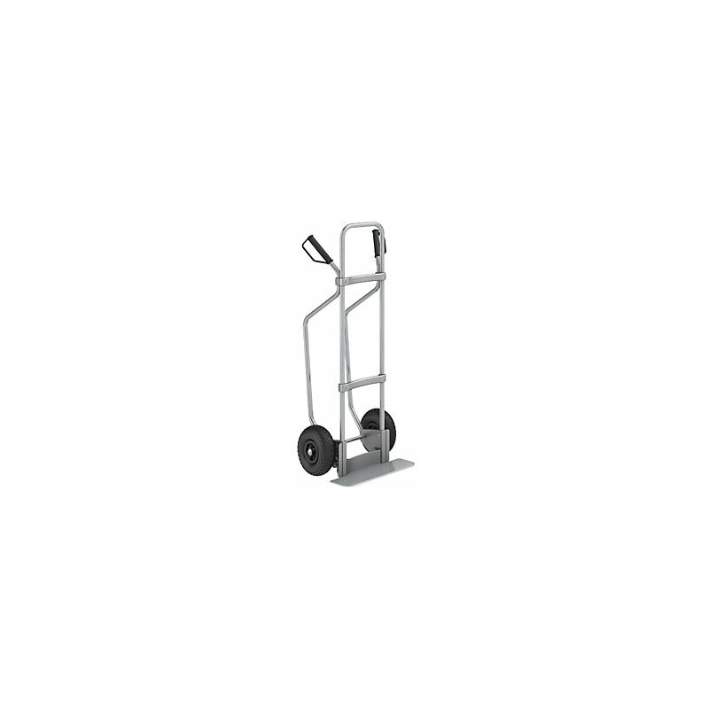 Carrello per sacchi con pattini, zincato, piano di appoggio largh. x prof. 450 x 160 mm, zincato, ruote con camera d'aria. Fornitura = in parte smontato. Tipo di prodotto = carrelli modulari per sacchi. Versione = con pattini, con piano di appoggio. Portata = 200 kg. Larghezza pala = 450 mm. Profondità pala = 160 mm. Materiale = acciaio, con zincatura galvanica. Materiale della pala = lamiera d'acciaio, con zincatura galvanica. Altezza = 1310 mm. Larghezza = 500 mm. Versione ruote = ruote con camera d'aria. Diametro ruote = 260 mm. Cuscinetti ruota = cuscinetto a rulli. Colore = zincatura. Peso = 10.4 kg. Carrello per sacchi di alta qualità in tubo d'acciaio e colata di alluminio. Salvaspazio grazie alla pala ribaltabile. Versatili grazie a numerosi accessori modulari. Ricambi garantiti per tutti i componenti. Ideale per il trasporto facile e sicuro di casse, cassette, scatole di cartone, nonché pacchi per spedizioni postali e scatole per traslochi, lavatrici e frigoriferi. Carrelli