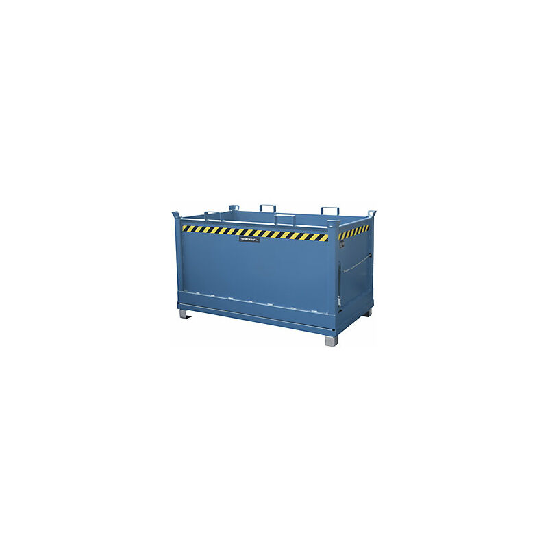 Vieni a scoprire il contenitore a fondo apribile eurokraft pro, un prodotto di alta qualità progettato per rendere più efficiente e sicuro il trasporto e lo stoccaggio di merci pesanti. Con una capacità di 1,5 m³ e una portata fino a 1500 kg, questo contenitore è perfetto per le esigenze di magazzino e logistica di qualsiasi azienda. Realizzato in resistente lamiera d'acciaio e verniciato in un vibrante blu genziana RAL 5010, offre una durabilità eccezionale e si integra perfettamente in qualsiasi ambiente. Le sue caratteristiche uniche, come i 4 anelli di sollevamento per gru e la possibilità di svuotamento completo tramite fondo apribile, lo rendono estremamente pratico e versatile. Inoltre, la chiusura automatica del fondo appoggiando il cassone a terra e l'altezza ridotta permettono di impilarlo su 3 livelli e di utilizzarlo in spazi ristretti o sotto le macchine, ottimizzando lo spazio di stoccaggio. Grazie alle sue dimensioni ridotte e alle facilità d'uso, come l'altezza