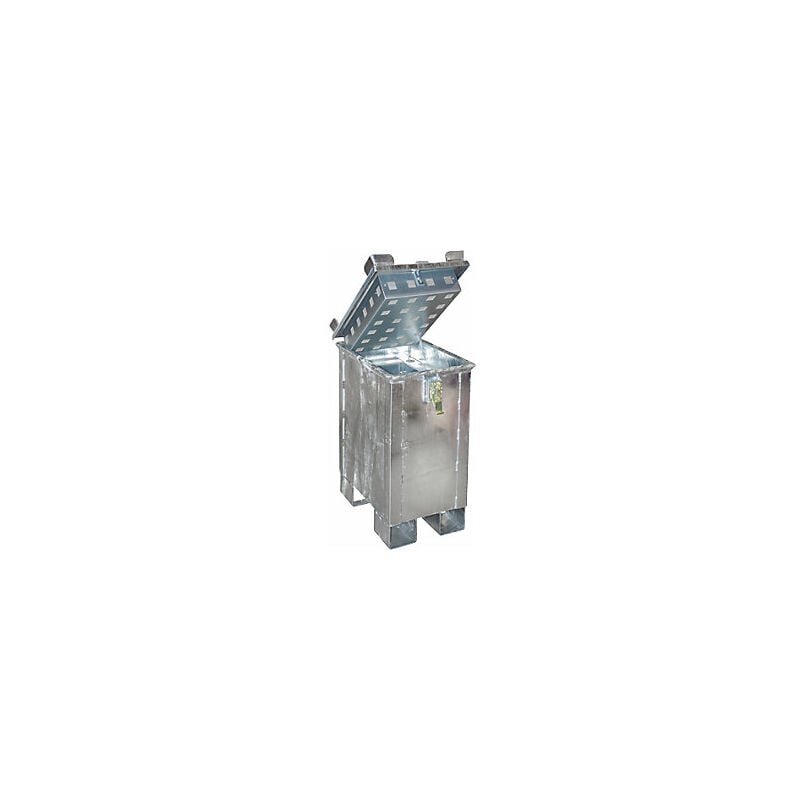 Contenitore per lo stoccaggio di accumulatori per batterie/accumulatori agli ioni di litio, capacità 30 l, lungh. x largh. x alt. 400 x 600 x 750 mm. Fornitura = montato. Capacità = 30 l. Lunghezza = 400 mm. Larghezza = 600 mm. Altezza = 750 mm. Peso = 78 kg. Colore = zincatura a fuoco. Numero maniglie = 1 pz. Portata = 100 kg. Materiale = lamiera d'acciaio, granuli di silicio. Carico impilabile = 200 kg. Per sostanze = batterie/accumulatori agli ioni di litio. Luogo d'impiego = per interni ed esterni. Tipo di prodotto = contenitori per stoccaggio/trasporto di batterie ricaricabili. Stoccaggio sicuro di batterie agli ioni di litio danneggiate e difettose. Riempitivo (PyroBubbles®) tra il contenitore interno ed esterno - ottima protezione antincendio grazie all'effetto soffocante e raffreddante del riempitivo. Con entrata forche, per un trasporto semplice con elevatori a forche o carrello elevatore. Contenitore in acciaio per lo stoccaggio sicuro all'interno e all'esterno di batterie